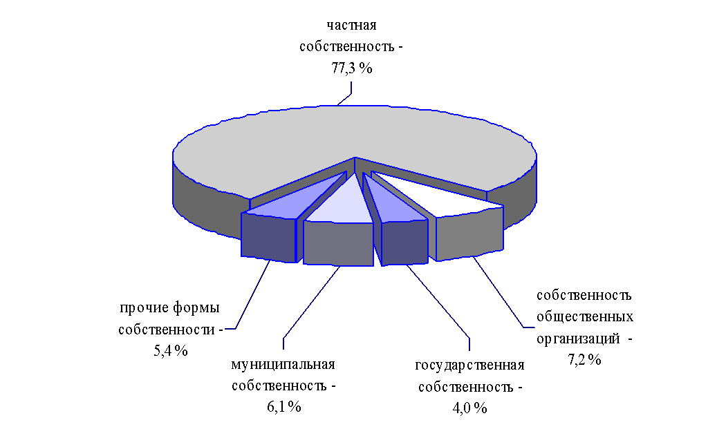 Рис. 1. Распределение субъектов хозяйствования по формам собственности на 01.01.2003 г.