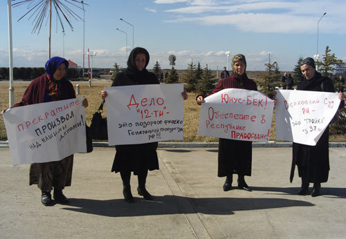 Вчера, 9 марта, в Назрани, во дворе Министерства внутренних дел Ингушетии, родственники содержащихся в ИВС также провели пикет, требуя назначить дату рассмотрения дела.
