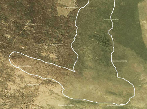 На снимке 1989 года четко просматривается зеркальная поверхность пустыни в форме "сапога". Пустыня, по словам Владимира Ивановича, имела техногенное происхождение, связанное с перевыпасом скота и распашкой земель. На снимке 2006 года "зеркало" пустыни уже отсутствует.