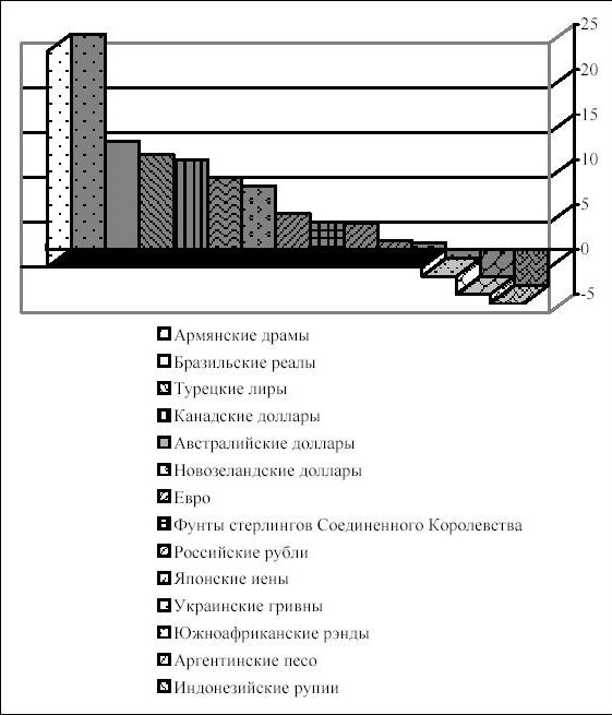 Рис. 2. Обменный курс доллара с 9 декабря 2006 г. по 7 августа 2007 г., %