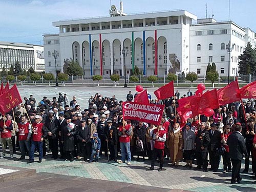 В Дагестане на центральной площади Махачкалы собрались около 200 человек. На трибуну у постамента памятнику Владимиру Ленину поднялись первые лица местного отделения КПРФ, в числе которых был бывший депутат Госдумы России Махмуд Махмудов, депутат Народного собрания Дагестана Мурзадин Авезов.