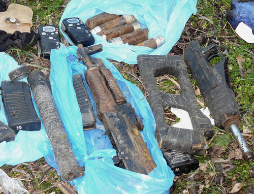Из тайника силовики изъяли автомат Калашникова с приспособлением для бесшумной стрельбы, специальный автомат ВСС, гранатомет РПГ-26, большое количество боеприпасов к ним и камуфлированную одежду.