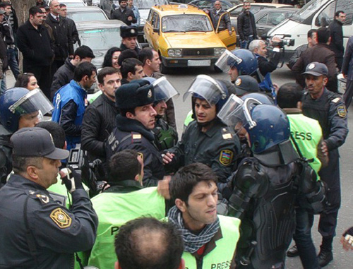 Напомним, оппозиционные силы Азербайджана решили 2 апреля провести в Баку митинг с требованием демократических преобразований. Лидеры партий Народного фронта Азербайджана (ПНФА) и "Мусават" Али Керимли и Иса Гамбар 1 апреля были приглашены в Главное управление полиции города Баку, где с каждым из них беседовали руководители полиции и прокуратуры. Оппозиционеры отвергли требование об отмене митинга. Еще утром 2 апреля полиция оцепила проезды к центральным улицам Баку, готовясь к несанкционированному митингу. До начала митинга уже стало известно о задержании около 10 оппозиционеров.
