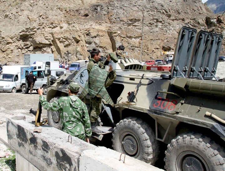 В Дагестане к месту проведения митинга прибыла колонна мотострелковой дивизии РФ