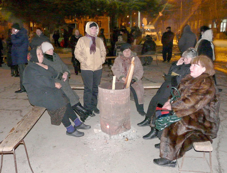 На площади продолжают гореть костры, на улице морозно - около -5-7. Многие обмотаны одеялами. Среди митингующих - представители интеллигенции, старики, дети. На Театральной площади также стоят две большие палатки.