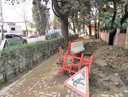 Место прорыва кабеля из-за незаконного бурения грунта. Сочи, апрель 2012 г. Фото Светланы Кравченко для "Кавказского узла"Напомним, ранее специалисты "Кубаньэнерго" также заявили, что участившиеся перебои с электроэнергией в Сочи связаны с незаконными действиями подрядных организаций, которые работают на строительстве олимпийских и коммерческих объектов.