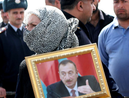Они держали в руках портреты президента Ильхама Алиева, а также плакаты с  лозунгами "Мы хотим компенсаций не от местных чиновников, а от президента!", "Мы хотим встречи с президентом!".