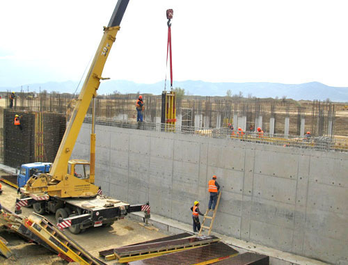 В настоящее время начато строительство главного объекта предприятия - печи по выплавке стекла, завершается монтаж склада готовой продукции площадью 45 тысяч кв. метров, передает корреспондент "Кавказского узла", побывавший на месте строительстве завода. На стройплощадке работают около 200 специалистов.