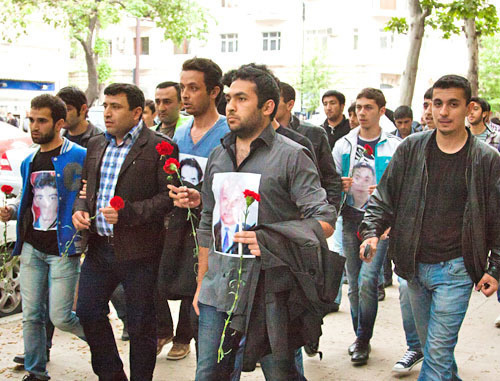 Несколько групп молодежных активистов общей численностью примерно 150 человек с разных направлений попытались сегодня совершить шествие к корпусу АГНА, где три года разыгралась кровавая драма. Однако уже с утра усиленные наряды полиции перекрыли оба подступа к зданию по улице Диляры Алиевой.