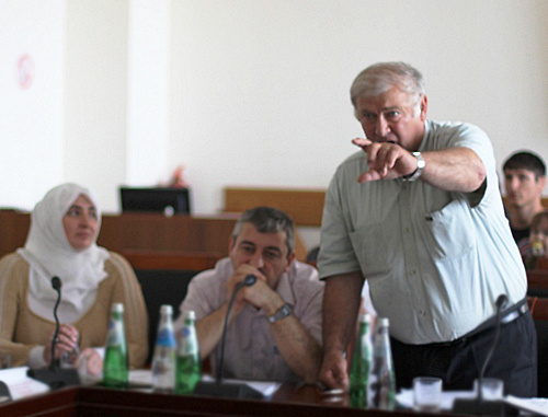 Модераторами второго дня форума были представитель Северной Осетии, редактор газеты "Мир Кавказу" Анатолий Сидаков и председатель союза "Отечество" Нелля Раджабова. На мероприятие прибыли правозащитники и активисты общественных организаций всех республик Северного Кавказа.