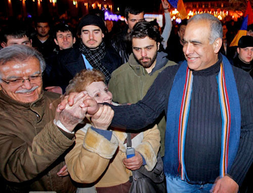 "Кавказский узел" сообщал, что, по данным ЦИК Армении, в результате голосования на выборах президента 18 февраля победу одержал Серж Саргсян, набравший 58,63% голосов, Раффи Ованнисян получил 36,75% голосов избирателей. Выступая на митинге 20 февраля, Раффи Ованнисян заявил, что все дальнейшие действия как его самого, так и его сторонников должны быть направлены на юридическое признание его победы на президентских выборах, и наказание всех, кто был причастен к фальсификациям выборов
