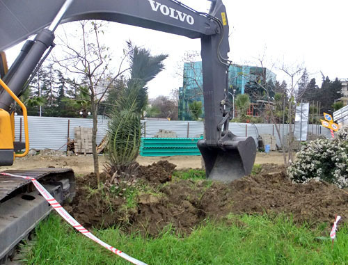 Как сообщал "Кавказский узел", 3 февраля сочинцы выразили обеспокоенность появившимся напротив железнодорожного вокзала забором, которым оказались огорожены многолетние пальмы в парковой зоне. Строители начали выкорчевывать пальмы 23 февраля. Они пояснили, что корчевка пальм ведется целью строительства в этом месте подземного перехода.