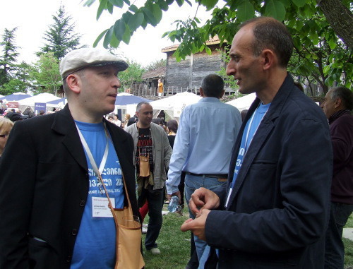 На фестивале вина в Тбилиси 11 мая 2013 г. Фото Эдиты Бадасян для "Кавказского узла""Это еще один повод оторваться от повседневности. Встретить огромное количество своих знакомых и вместе продегустировать разные сорта вин. Помимо всего этого, очень влияет и сама обстановка. Фестиваль проводится на открытом воздухе, на природе фактически, что вдвойне приятно. К сожалению, в Грузии таких мероприятий для народа пока еще маловато. Надеюсь, что это направление будет развиваться", - рассказал корреспонденту "Кавказского узла" гость фестиваля Гела Бандзеладзе.