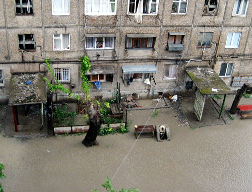 Вода подтопила ряд улиц и площадей города, перекрыв движение транспорта. Большая часть города остается без электроэнергии, в 03.31 сообщает "Интерфакс"