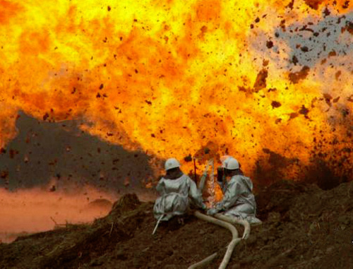 Ранее спасатели заявляли, что поврежденный нефтепровод находится под землей, угрозы распространения возгорания и разлива нефтепродуктов нет.