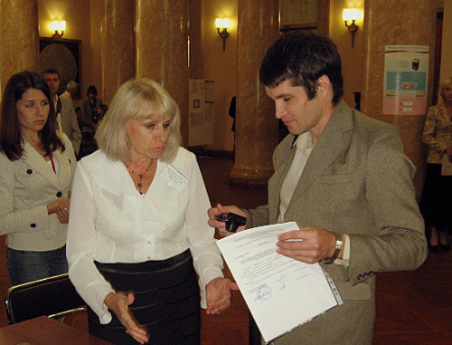 Сергей Боженов получает избирательный бюллетень. Волгоград, 8 сентября 2013 г. Фото Вячеслава Ященко для "Кавказского узла""В настоящий момент я нахожусь на избирательном участке 1022, где гражданину Боженову был выдан избирательный бюллетень. Данный гражданин, как мне пояснили сотрудники избирательной комиссии, не является лицом, постоянно зарегистрированным в Волгограде и в Волгоградской области. То есть он не обладает избирательным правом при выборах в Волгоградском регионе. Временная регистрация дает основания голосовать, только если человек находится в больнице, санатории, но все равно проживает на территории Волгоградского региона. То есть, в данном случае Боженову был выдан избирательный бюллетень незаконно", - заявил в интервью корреспонденту "Кавказского узла" Максим Давыдов.