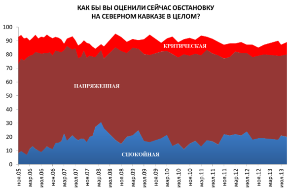 Проблема нестабильности на самом Северном Кавказе россиян мало волнует, так как не несет угрозы их личной безопасности. Они предпочли бы, чтобы жители региона разобрались с этим сами. Первые места в опросах  что волнует россиян традиционно занимают вопросы благосостояния, роста цен, роста тарифов ЖКХ.
