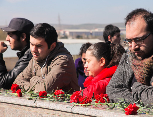 В Азербайджане около 40 человек вышли на митинг у могилы журналиста Гусейнова