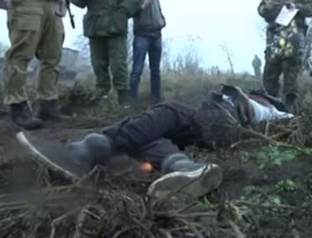 "Каждый день продолжают гибнуть мирные жители. Недалеко от Славянска нацгвардия расстреляла мужчину. Возле тела демонстративно оставили оружие, давая понять, что убили врага. Но в штабе ополчения уже заявили, что убитый не был в составе сил самообороны", – говорит корреспондент "Вестей", когда на экране демонстрируется труп. Рядом с телом лежит пистолет, а в углу экрана появляется титр "Донецкая область".