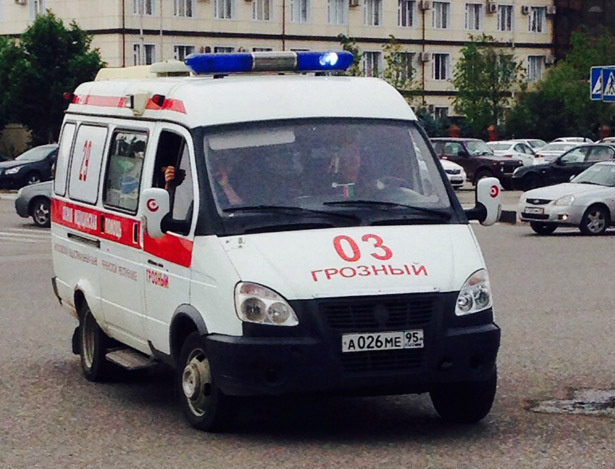 Автомобиль разъезжает по центру чеченской столицы, распространяемое через громкоговоритель обращение адресовано населению города. В сообщении говорится о "многочисленных отравлениях в результате употребления воды".