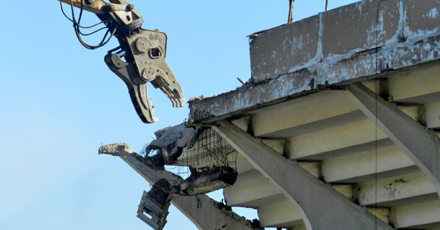Помимо экскаватора-разрушителя с гидроножницам при демонтаже старого стадиона будут задействованы гидромолоты и экскаваторы с ковшами, сообщил Сергей Стрижов - главный инженер группы компаний "Реформа" из Екатеринбурга, которая проводит демонтаж.