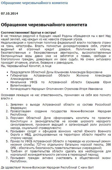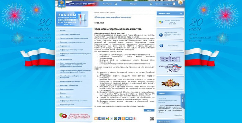 Обращение о создании Нижне-Волжской Республики, размещенное хакерами на сайте Астраханской областной думы