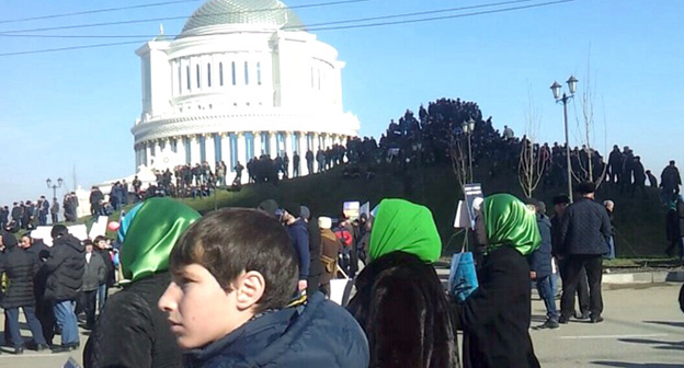 Ранее сотрудница одного из республиканских министерств рассказала, что на работе их предупредили о необходимости принять участие в акции. "Нам вчера (15 января) на работе сказали, что в понедельник всем необходимо будет быть на месте и принять участие в акции. Каждому руководителю, как пояснил наш начальник, поручено обеспечить явку людей на этот митинг", - сообщила женщина на условиях анонимности корреспонденту "Кавказского узла".