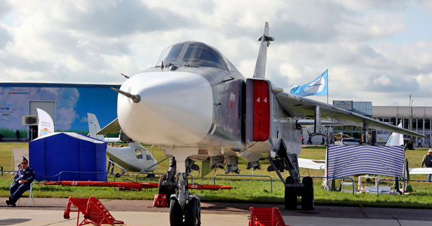 Су-24 - российский фронтовой бомбардировщик, предназначенный для нанесения ракетно-бомбовых ударов в простых и сложных метеоусловиях. Самолет способен выполнять боевые задачи на малых высотах с прицельным поражением наземных и надводных целей. Су-24 остается одним из наиболее массовых боевых самолетов российских ВВС.