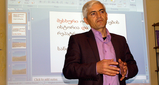 Во время конференции с докладом выступил историк Георгий Пурцадзе, который представил презентацию с материалами об истории населения Джавахского региона (уточнение от 20:05 4 апреля: презентацию представил историк Георгий Маградзе). Он опубликовал фотографии 22 сел и привел фамилии людей, которые проживали в этих селах до депортации в 1944 году. "Таким образом, речь идет об реинтеграции этнических грузин", - заявил Георгий Пурцадзе.