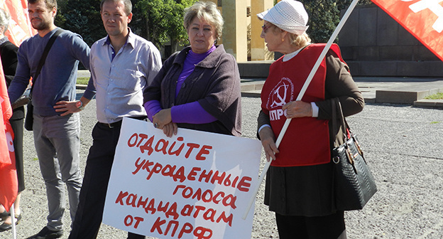 Активисты КПРФ провели в Волгограде третий пикет с требованием пересчета голосов избирателей на выборах 13 сентября. Участники акции привели новые примеры нарушений во время голосования.
