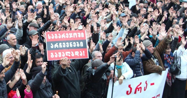 В ходе акции протеста у здания правительства Грузии трое лидеров партии "Альянс патриотов" объявили, что с полуночи начнут голодовку с требованием отменить итоги промежуточных выборов в парламент. Они предложили сторонникам партии поддержать их и присоединиться к голодовке.