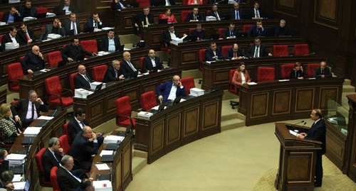 Заседание парламента Армении. Фото: RFE/RLМы выдвинули четыре основных рекомендации. Первая касается, в частности, отмены ограничений на право быть кандидатом: в окончательном варианте требование по жительству было снижено с пяти до четырех лет, что, на наш взгляд, является улучшением. Тем не менее, положение об исключении лиц с двойным гражданством из кандидатов в депутаты Национального Собрания не было отменено. Вторая рекомендация касалась второго тура выборов в случае неполучения большинства в первом туре. Венецианская комиссия считает, что этот вопрос должен быть оговорен в Избирательном кодексе. Теперь статья 89 больше не предписывает, что второй тур «должен» обязательно состояться, но что он «может» быть проведен. Кроме того, статья 89 не входит более в список положений, для внесения поправок в которые необходимо проведение референдума.