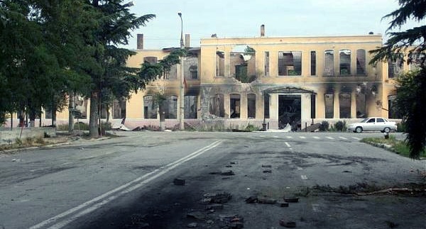 Рабочие приступили к разбору кровли сгоревшего здания Юго-Осетинского государственного университета, затем будут снесены сгоревшая часть старого здания и уцелевший корпус.