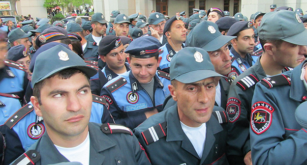 Скопление полицейских сил наблюдается возле парламента Армении, а также вокруг площади Свободы. У резиденции находятся только две машины полицейских.