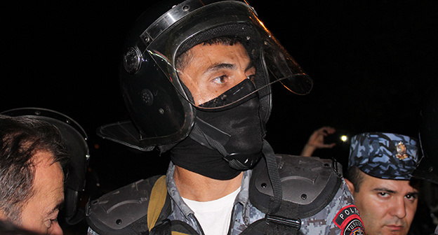 "Кавказский узел" писал, что с 17 июля в Ереване вооруженные члены оппозиционного "Учредительного парламента" захватили здание полка полиции. Они потребовали освободить политзаключенных, включая своего лидера Жирайра Сефиляна, а также добиваются отставки президента Сержа Саргсяна и формирования временного правительства. В день захвата здания убит офицер полиции, еще шесть человек получили ранения. К 23 июля захватчики здания освободили всех взятых в заложники правоохранителей.