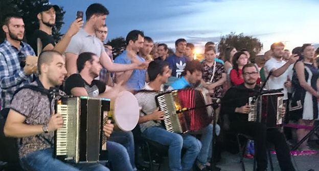 По его словам, для репатриантов были накрыты столы c блюдами национальной кухни, подготовлена концертная  программа с участием ансамбля этнической адыгской музыки и песни "Жьыу", который выступил совместно с местными любителями адыгского фольклора.