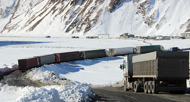 "С 23.00 25 декабря до особого распоряжения запрещено движение большегрузных автотранспортных средств на участке Владикавказ - н.п. Ларс – в направлении на выезд из Российской Федерации. Такое решение было принято в связи с ухудшением погодных условий на территории Грузии, невозможностью обеспечения безопасного проезда автотранспортных средств, а также в соответствии с рекомендацией пограничной полиции Грузии", - говорится в сегодняшнем сообщении на сайте главного управления МЧС России по Северной Осетии.