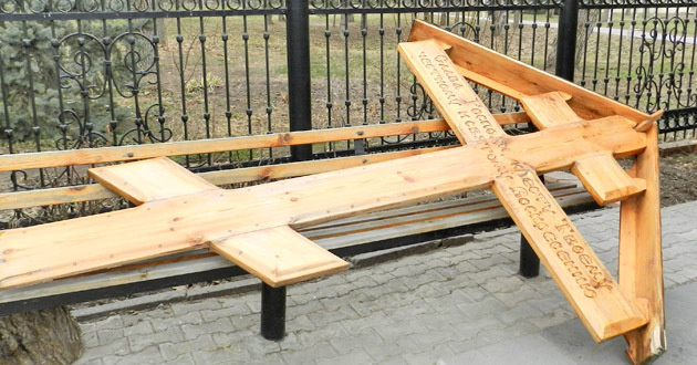 Православный крест спилен у храма Иоанна Предтечи в Волгогарде. 16 марта 2017 г. Фото Татьяны Филимоновой для "Кавказского узла"В случаях вандализма и воровства в храмах представители православной церкви обычно исключают версию межрелигиозного конфликта, сказал корреспонденту "Кавказского узла" руководитель информационно-издательского отдела волгоградской епархии иерей Сергий Савенков.