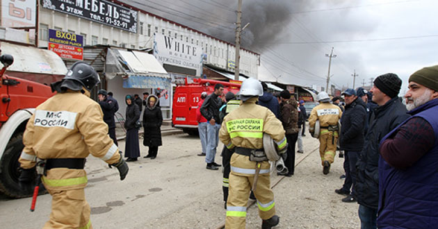 Крупный пожар на рынке в столице Дагестана, локализованный на площади 1200 квадратных метров, начали тушить с воздуха.