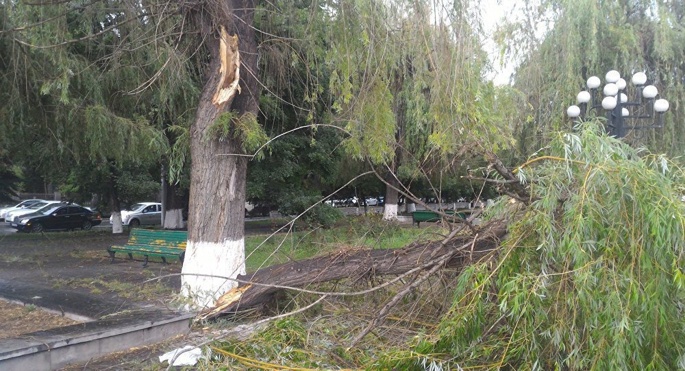 Ветер повредил крыши домов и повалил деревья в столице и в Армавирской области Армении. Один из районов Еревана частично обесточен в результате аварии.