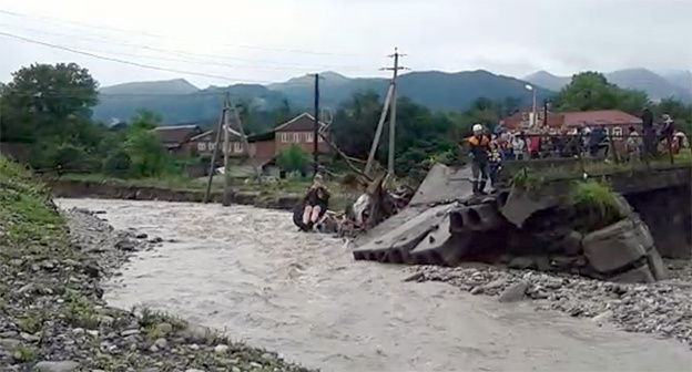 Сотрудники МЧС завершили эвакуацию жителей села Верхний Бирагзанг и туристов, оказавшихся заблокированными из-за разрушения моста после ливней.