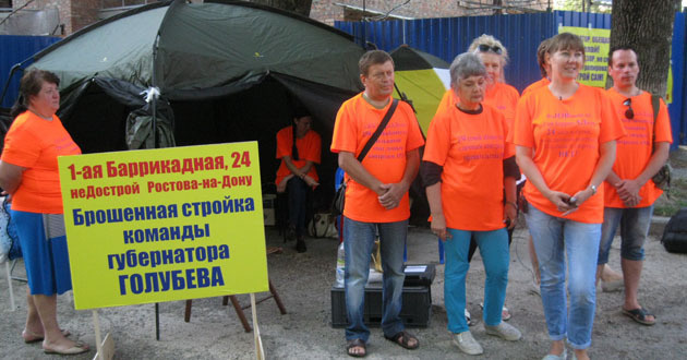 Как сообщал "Кавказский узел", 10 июля обманутые дольщики ЖК "Баррикадная", собравшиеся в Ростове-на-Дону у недостроенного дома на улице 1-я Баррикадная, заявили о начале голодовки протеста. Они требуют провести строительную экспертизу для оценки состояния недостроя и изыскать ресурсы на строительство дома в городском бюджете или резервном фонде области.
