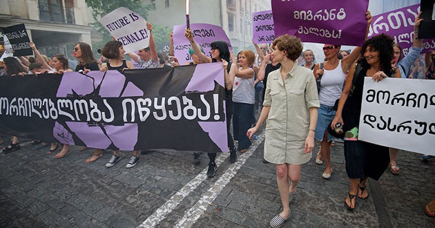 Сотни человек приняли участие в шествии за права женщин, организованном в центре Тбилиси в ответ на "Марш грузин".