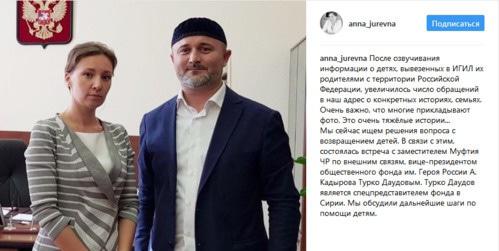 Омбудсмен отметила, что обсудила возможности возвращения детей в Россию с заместителем муфтия Чечни по внешним связям, вице-президентом общественного фонда имени Ахмата Кадырова Турко Даудовым. Других подробностей она не сообщила.