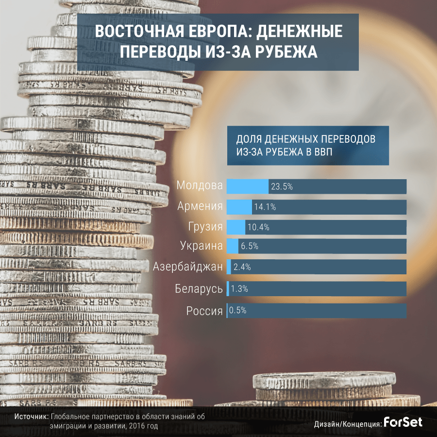 В ВВП Армении и Грузии доля денежных переводов из-за границы составляет более 10 процентов.