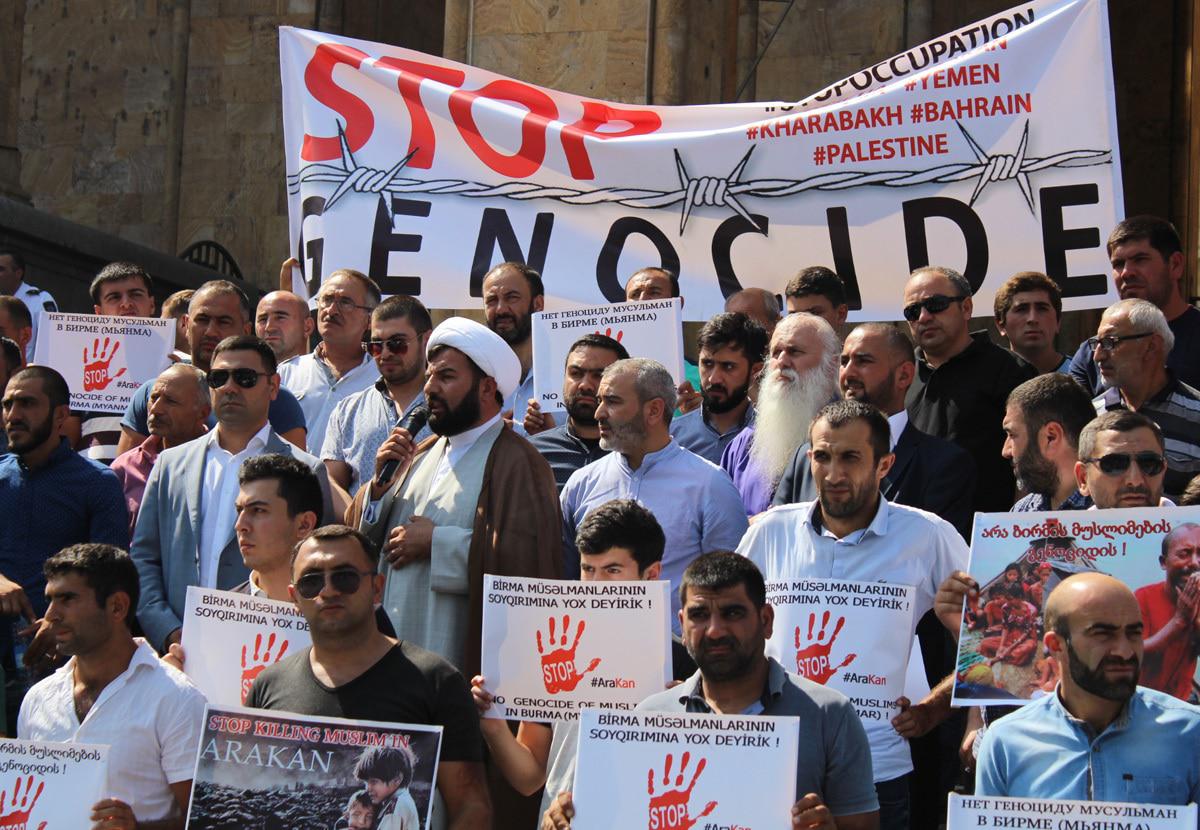 "Мы собрались на акцию, так как ислам - наша религия - скорбит, когда происходит насилие в отношении людей. Мы заявляем о своей солидарности с мусульманами в Мьянме, подвергшимися жестокости", - заявил в ходе акции имам мечети в Марнеули Хаджи Хаджиев.