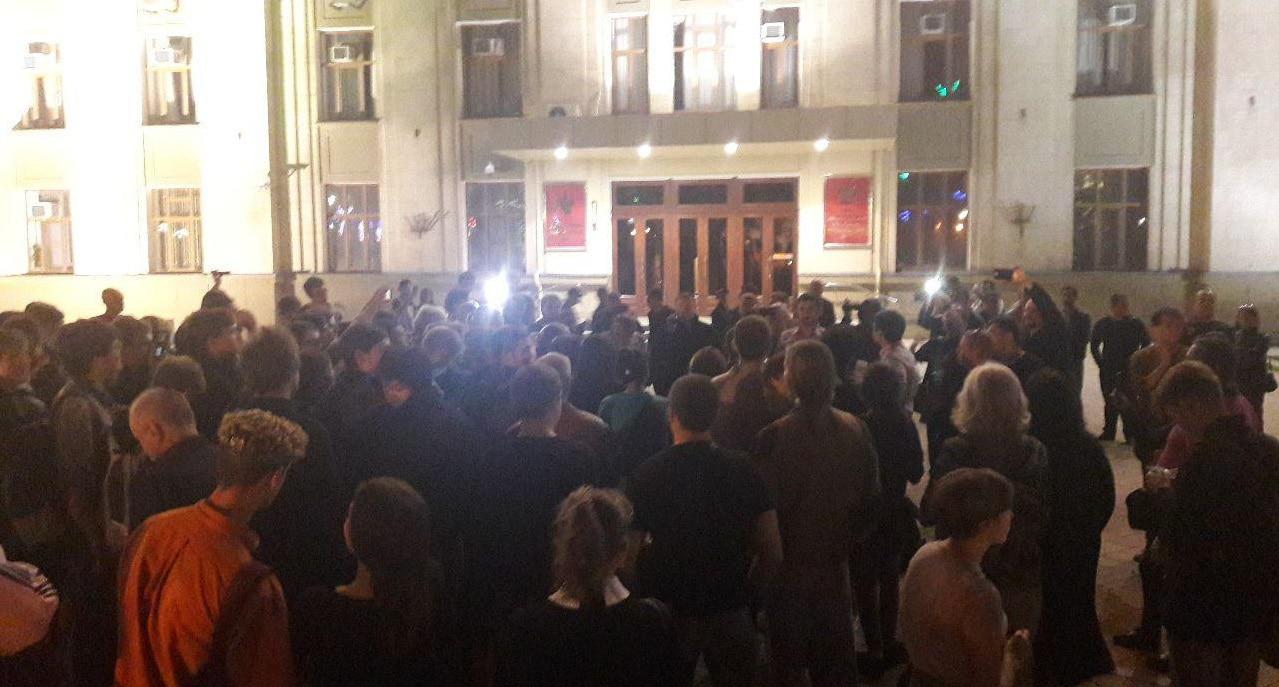 У здания собрались около 200 человек, передает корреспондент "Кавказского узла".
