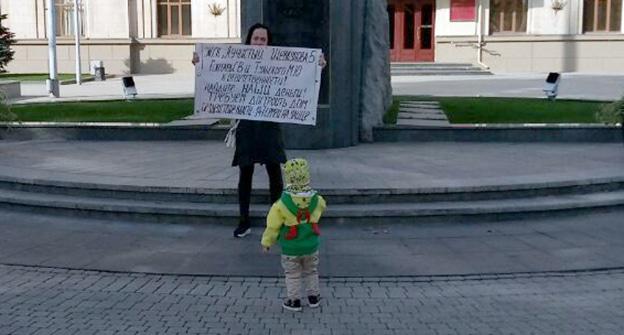 "Строительство семиэтажного жилого дома было остановлено, когда дом должны были сдать. Но вместо ключей нам показали крышу, коробку здания с частичными внутренними работами, без света, канализации, воды, тепла. В апреле 2016 года застройщик заявил о том, что в ЖСК уже нет денег, бухгалтерия утеряна. В декабре 2016 года было возбуждено уголовное дело", - рассказал корреспонденту "Кавказского узла" другой пикетчик Алексей Щуренко.