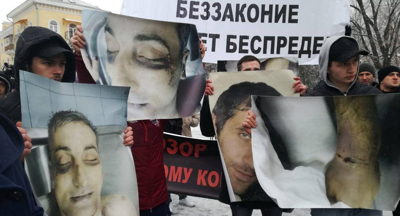 Участники акции во Владикавказе в поддержку родных Владимира Цкаева, умершего после допроса в отделе полиции, потребовали справедливого наказания для виновных. Статья "причинение смерти по неосторожности" по делу о гибели Цкаева должна быть переквалифицирована на "убийство", считают его родственники.