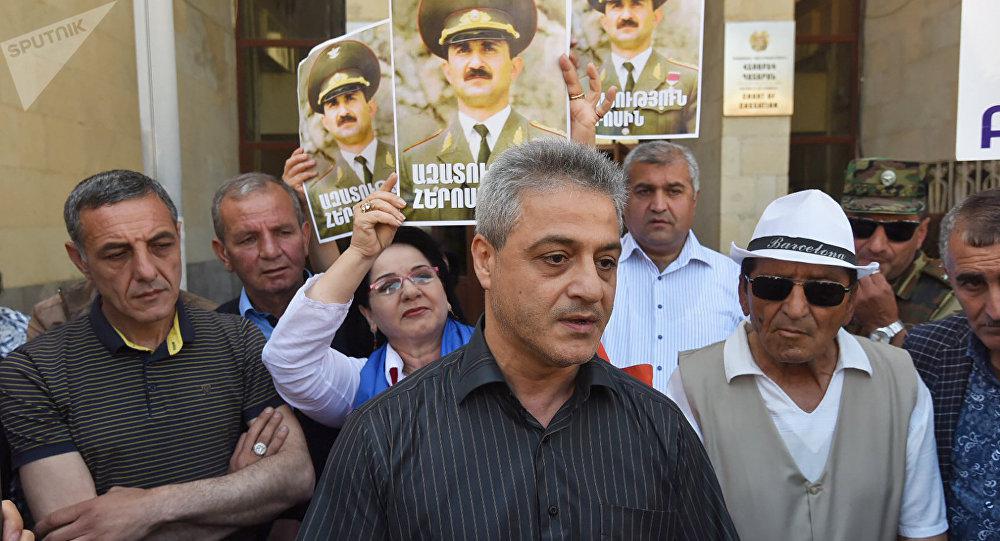 Гражданский активист Вардгес Гаспари лег перед входом в здание суда. "Над головой судебной системы по-прежнему висит прежняя власть", - заявил он.